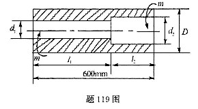 图示两段空心圆轴,已知d1=30mm,d2=50mm,D=60mm,欲使两圆轴的扭转角Φ1=Φ2,则l2的长度为( )mm。