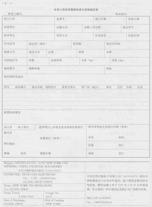 “运输工具名称”栏应填( ). A.江海 B.HONGFAN