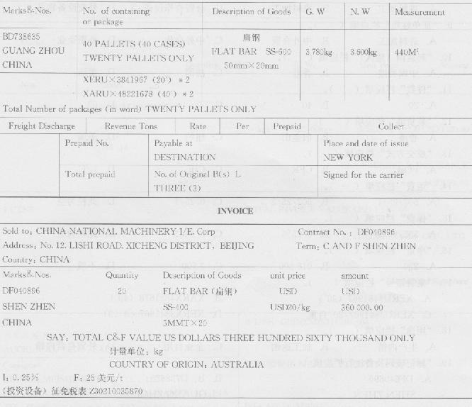 “装货港”栏应填( ). A.中国