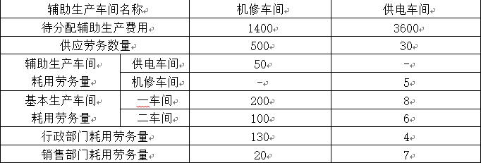 某制造企业下设机修和供电两个辅助生产车间,采用交互分配法分配辅助生产费用。辅助生产车间的制造费用不通过“制造费用”科目核算。2020年3月份各辅助生产车间发生的费用及提供的产品和劳务数量见下表: