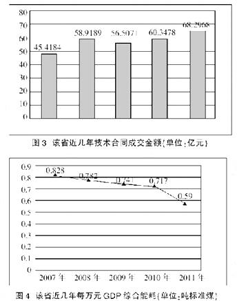 2011年,某省全社会研发经费达612.93亿元,R D9(研发)经费占GDP的比重达1.9%。比2010年提高0.12个百分点。2011年,该省专利申请量和授权量分别达16.5万件和13万件。同比增长35%和11.7%。2011年,该省技术市场合同成交额68.2928亿元。2011年,该省每万元GDP能耗0.590吨标准煤。