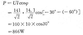 图示电路中,u=141sin(314t-30°)V,i=14.1sin(314t-60°)A,这个电路的有功功率P等于:W。 A. 500W B. 86...