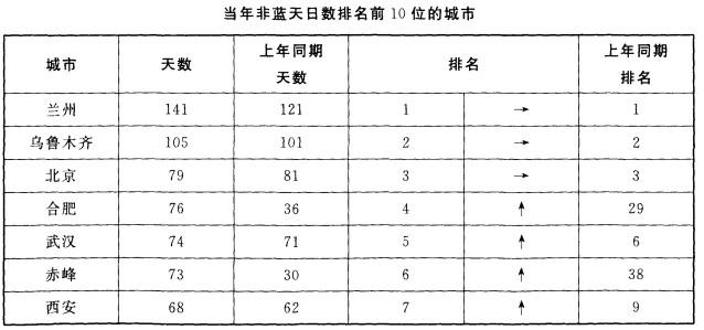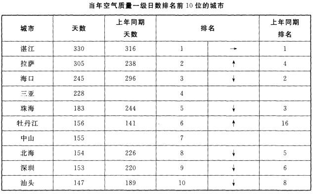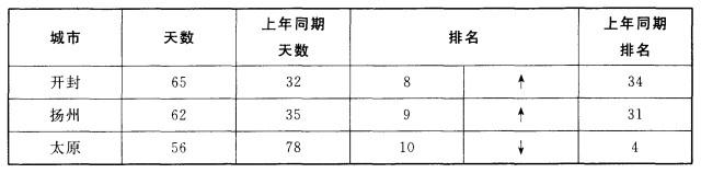根据下列统计资料回答问题。 当年空气质量一级日数排名第4的城市,空
