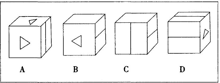 左边给定的是纸盒的外表面,下面哪一项能由它折叠而成?