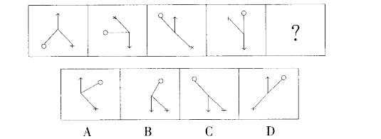 带圆的线条顺时针旋转45°,其他两种线条旋转180°得到后一个图形,由此选择A。