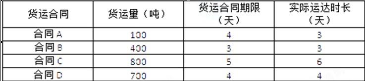 某货运公司2017年6月签订了A、B、C、D四项货运合同,月底的统计数据显示,因