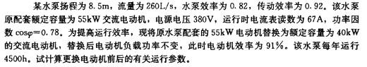 将原水泵配套的55kW电动机替换为40kW的电动机后,电动机的输人功率为()