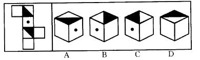 左边给定的是纸盒的外表面,下面哪一项不能由它折叠而成?