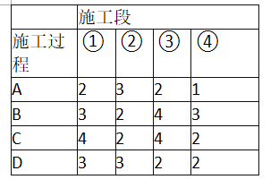 某工程由4个施工过程组成,分为4个施工段进行流水施工,其流水节拍(天)见表2—7