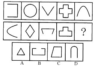 题干图形是开放-封闭-开放-封闭-开放的性质,而且每一开放图形的开口方向不相同。故正确答案为B。