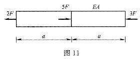 如图11所示轴向拉压杆的总伸长变形为( )。