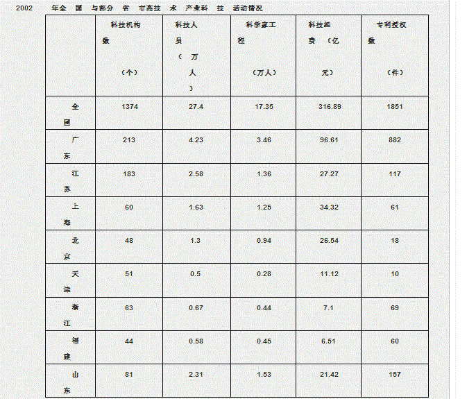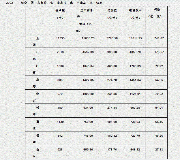根据表 1,高技术产业的增加值率(增加值/当年价总产值)最高的省(市)是: