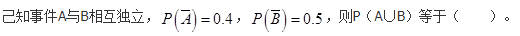 因为A、B相互独立,得P(AB)=P(A)P(B),所以P(A∪B)=P(A)+P(B)-P(AB)=P(A)+P(B)-P(A)P(B)=(1-0.4)+(1-0.5)-(1-0.4)×(1-0.5)=0.8。