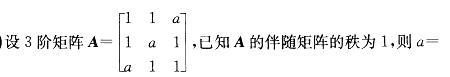 A. -2 B. -1 C. 1 D. 2A项A、B、C、D值分别代入,当a=-2代入时,R(A*) = 1。