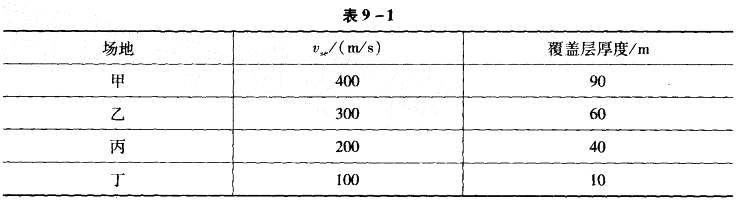 有甲、乙、丙、丁四个场地,地震烈度和设计地震分组都相同。它们的等效剪切波速vse