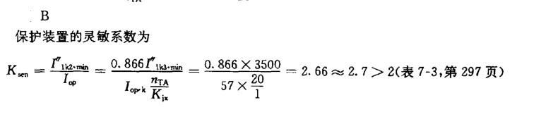 已知同第6题。 保护装置的灵敏系数为( )。A. 2.5; B. 2.7; C 3.5; D. 3.7。