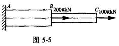 圆截面杆ABC轴向受力如图5-5所示。已知杆BC的直径d=100mm,AB杆的直