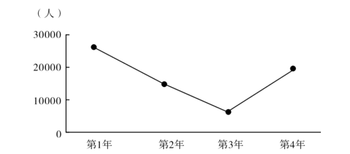 第一步,根据题干中“城市和农村低保总人数同比下降量的变化趋势”,确定为增长量的计算与比较。第二步,根据表格材料“城市和农村低保人数”,分别计算城市低保人数的下降量和农村低保人数的下降量,城市和农村低保总人数的下降量=城市低保人数的下降量+农村低保人数的下降量。结合选项重点计算2011、2012、2013、2014年这4年城市和农村低保总人数的下降量。2011年:(137024-117291)+(76955-70146)≈((137-117)+(77-70))千≈27千;2012年:(117291-109743)+(70146-62979)≈((117-110)+(70-63))千≈14千;2013年:(109743-103682)+(62979-59575)≈((110-104)+(63-60))千≈9千;2014年:(103682-89135)+(59575-51324)≈((104-89)+(60-51))千≈24千。2011、2012、2013、2014年这4年城市和农村低保总人数的下降量的变化趋势与折线图的变化趋势相同。因此,选择B选项。