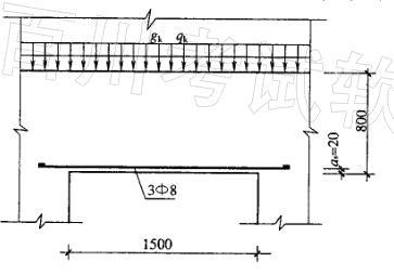 某住宅楼的钢筋砖过梁净跨=1.50m,墙厚为240mm,立面见图4-10,采用MU10烧结多孔砖、M10混合砂浆砌筑。过梁底面配筋采用3根直径为8mm的HPB235钢筋,锚入支座内的长度为250mm。多孔砖砌体自重18kN/m3。砌体施工质量控制等级为B级。在离窗口上皮800mm高度处作用有楼板传来的均布恒荷载标准值gk=10kN/m,均布活荷载标准值qk=5kN/m。