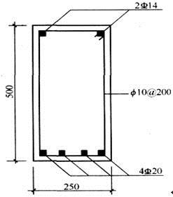 某混凝土单筋矩形截面简支梁,截面尺寸和配筋如图所示,采用C30混凝土,HRB33