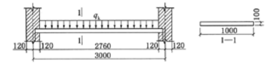 某简支在砖墙上的现浇钢筋混凝土平板(图2-13),板厚h=100mm,as=20