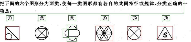 A [解析]本題中,①④⑥三个图形都是曲线在直线图形的内部,②③⑤三个图形都 是直线在曲线图形的内部。因此,本題正确答案为A。