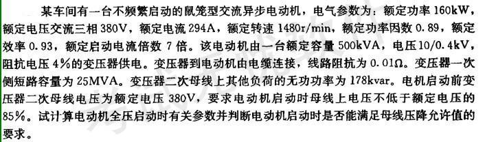 该鼠笼型电动机全压起动时起动回路的額定输入容量为( )(选最接近的一个 数据)。 A. 1567kVA; B. 1236kVA; C. 78...