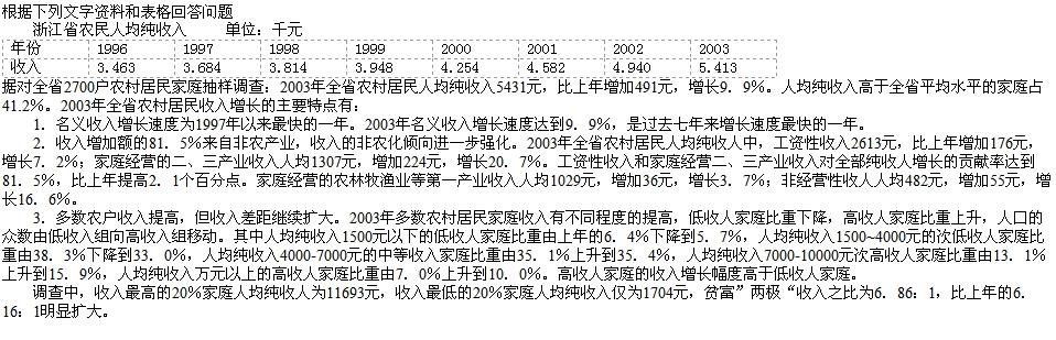 与2002年相比,2003年全省农村居民人均纯收人中,增长幅度最小的是( )