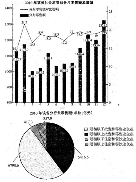 已知2010年该省限额以下批发和零售企业零售额相比于2009年同期增幅为18.7% ,那么2009年该省限额以下批发和零售企业零售额均为()