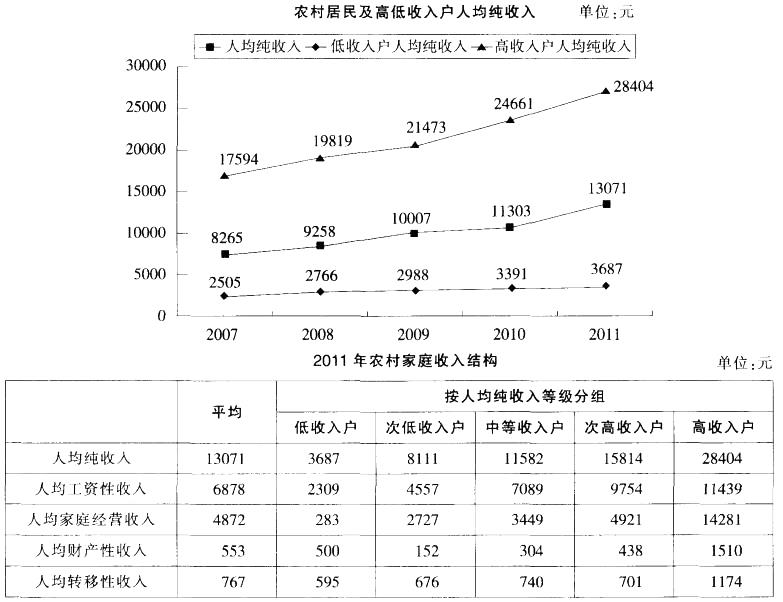 2011年,农村居民高收入户人均纯收的同比增长幅度约比低收入户高:
