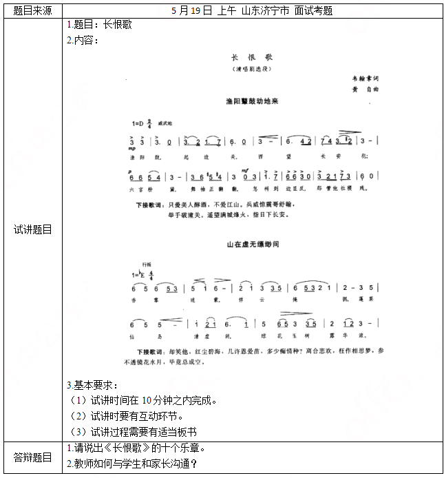 【答辩题目解析】1.请说出《长恨歌》的十个乐章。2.教师如何与学生和家长沟通?