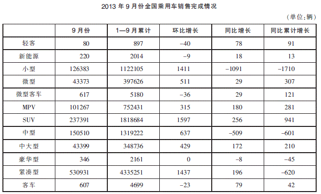 2013 年 9 月份全国乘用车销售完成情况 (单位:辆) 2013 年