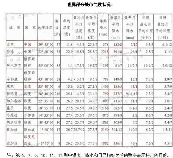.[解析] 最冷月与最暖月温差20度以上的城市为北京、鄂木斯克、海参威、东京,共4个。