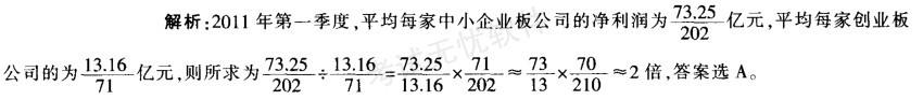 这534家公司中,平均每家中小企业板公司在2011年第一季度的净利润约是创业板公司的( )。