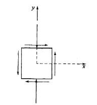 提示:题图单元体的主方向可用叠加法判断。把图中单元体看成是单向压缩和纯剪切两种应力状态的叠加,如解图a)和b)所示。其中,图a)主压应力σ'3的方向即为σy的方向(沿y轴),而图b)与图c)等价,其主应压力σ''3的方向沿与y轴成45°的方向。因此题中单元体主力主应力σ3的方向应为σ'3和σ''3的合力方向。根据求合力的平行四边形法则,σ3与y轴的夹角σ必小于45°,而σ1与σ3相互垂直,故σ1与x夹角也是a[img]/upload/tiku/190/2459950_1.jpg[/img]