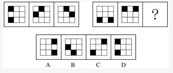 本题包含两套图形和可供选择的四个图形。这两套图形具有某种相似性,也存在某种差异。要求你从四个选项中选择最适合取代问号的一个。正确的答案不仅使两套图形表现出最大的相似性,而且使第二套图形也表现出自己的特征。
