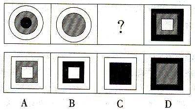 图形推理。请按每道题的答题要求作答。 下题中缺少一个图,请从下边选项中选择一个