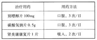 患者女,47岁。因“踝关节疼痛半月余”就诊。查体:大致正常。辅助检查:尿蛋白(+),血肌酐156μmol/L,血尿酸650μmol/L,余无明显异常。诊断:高尿酸血症;慢性肾脏病。医嘱: