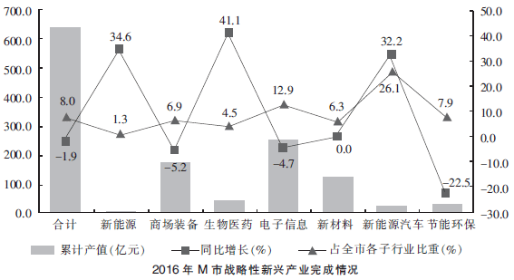 2016年 M 市战略性新兴产业完成情况 2016 年 M 市“四大产业集