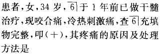 A.残髓炎,重新失活牙髓B.残髓炎,更换干髓剂C.残髓炎,改做根管治疗D.慢性根尖周炎,改做根管治疗E.慢性根尖周炎,改做塑化治疗