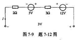 。提示:顺时针方向列写KVL方程2I-5+3I+12+3=0得 I=-2A。