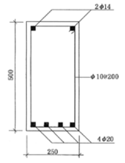 某混凝土单筋矩形截面简支梁,截面尺寸和配筋如图所示,采用C30混凝土,HRB33