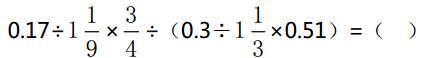 原式=0.17÷10/9×3/4÷(3/10÷4/3×0.51)=(0.17÷0.51)÷(10/9×3/10)×(3/4÷3/4)=1/3÷1/3=1