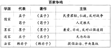 下面是某教师讲授“百家争鸣”一课时的板书,该板书的类型属于( )。
