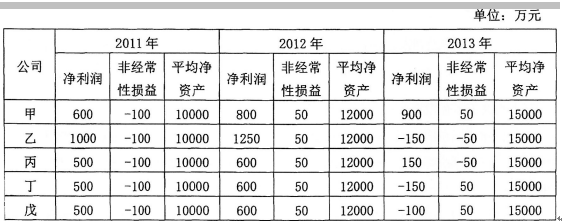 甲、乙、丙、丁、戊五家公司准备2015年3月在创业板上市,财务状况如下表,以下符