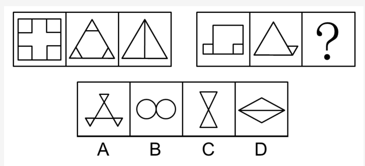 从所给的四个选项中,选择最合适的一个填入问号处,使之呈现一定的规律性: