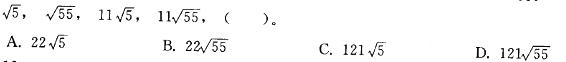 C各项重新变形后,底数为5X1,5X11,5X11X11,5X11X11X11,所以下一项应为 5X11X11X11X11,即为C。