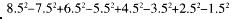 利用平方差公式展开。原式=(8.5+7.5)x(8.5-7.5)+(6.5+5.5)x(6.5-5.5)+(4.5+3.5)x (4.5-3.5)+(2.5+1.5)x(2.5-1.5)=16+12+8+4=40。