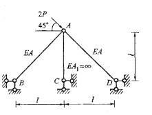 图示桁架中AC为刚性杆,则杆件内力将为:
