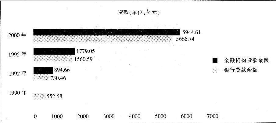 2000年与1995年相比银行贷款余额增长了百分之几()。